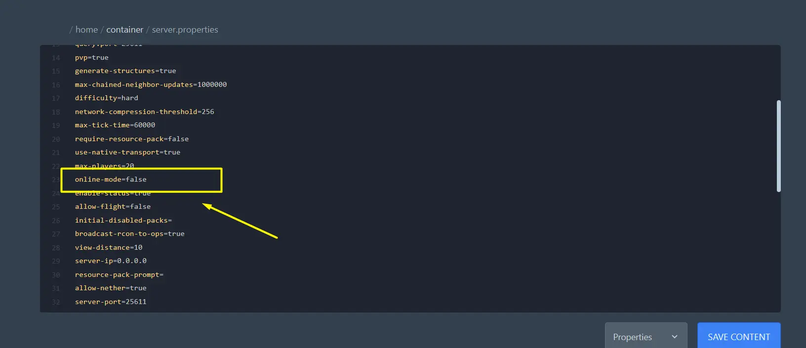 Buka file 'server.properties' dan cari pengaturan 'online-mode=true', ubah nilainya menjadi 'online-mode=false'.