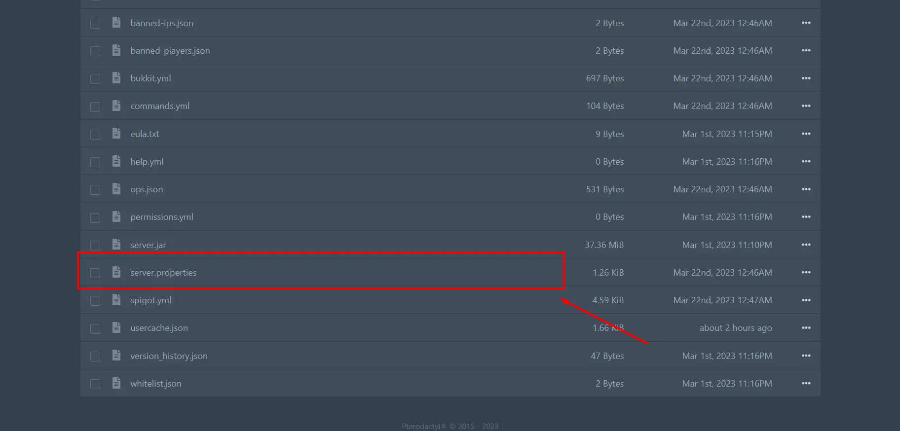 Selanjutnya, pergi ke bagian 'Files' dan cari file 'server.properties'.